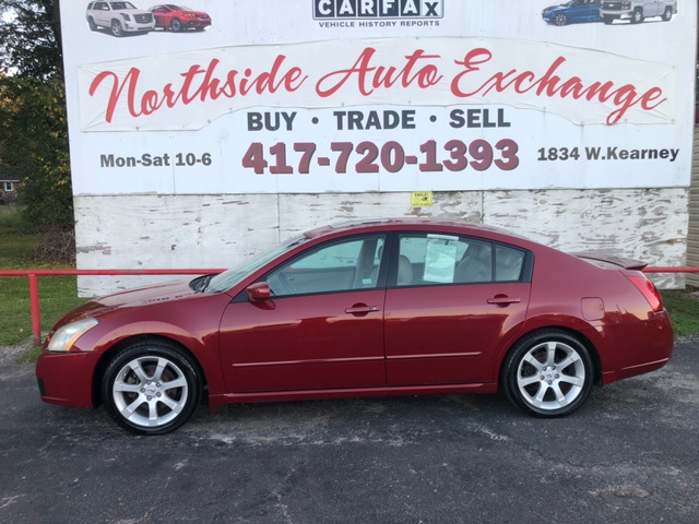 We have this very nice local 2007 Nissan Maxima, it was a local new car trade-in car with great tires this car is still like new. We have it priced at $3995.00, just drop by and tell us you saw it here. Northside Auto Exchange 1834 W. Kearney Springfield, Mo. 65803 or call 417-720-1393 or 417-839-7394 , MON-SAT 10-6pm . We also offer local bank financing WAC.