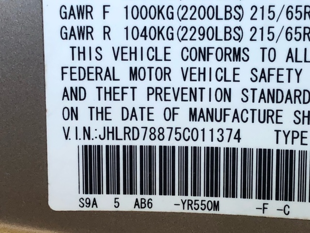 | VINJHLRD78875C011374 | MakeHonda | ModelCR-V | Year2005 | TrimEX 4WD AT |