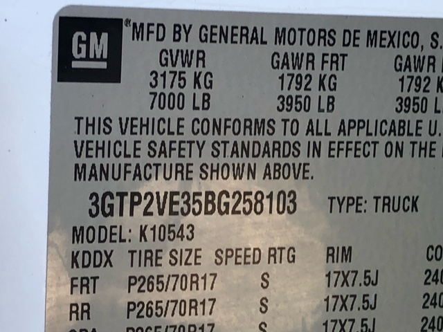 | VIN3GTP2VE35BG258103 | MakeGMC | ModelSierra 1500 | Year2011 | TrimSLE Crew Cab 4WD |