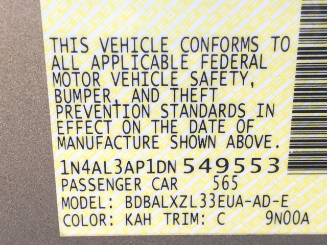 | VIN1N4AL3AP1DN549553 | MakeNissan | ModelAltima | Year2013 | Trim2.5 SL |